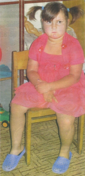 Карині було три місяці, коли ми знову потрапили в обласну лікарню. Гемоглобін — 53, треба рятувати дитя. У Чернігові я з нею пролежала місяць. Робили переливання крові. Потрібні були гроші. Продали картоплю за безцінок, аби тільки зібрати потрібну суму. Слава Богу, з того часу дитина не хворіє, усе у нас з її здоров'ям гаразд. Там така пишечка! Бідова, шустра. Хвилини спокійно не посидить.