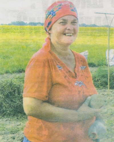 Там ми й зустрілися. Картоплекопалка вже викинула бульби з землі, і гурт людей збирав їх по всій ділянці. Журналістів «Вісника Ч» зустріли привітно, хвалили нашу газету і казали, що давно час написати про Людмилу Величко.