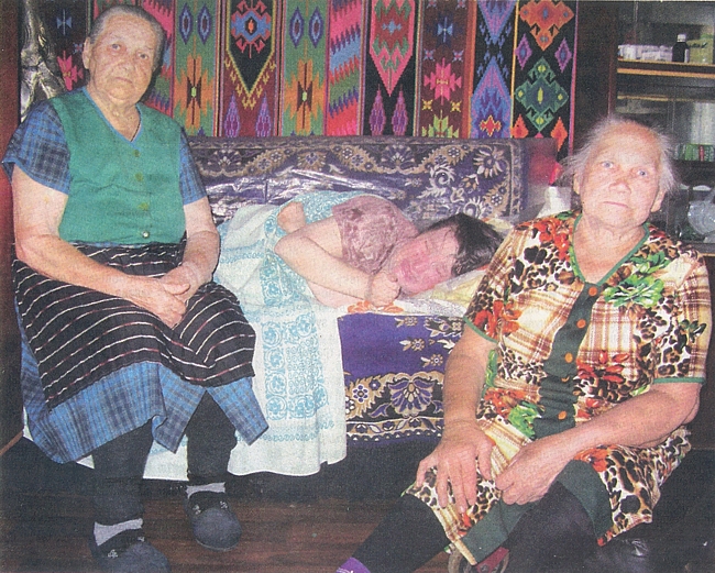 Тетяна Михайлівна і Анастасія Михайлівна завжди біля Раї. Килим на стіні - вишитий золотими руками молодшої сестри