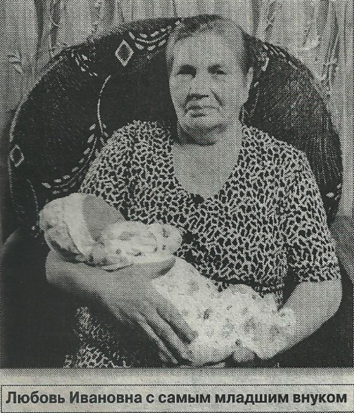 Одну девочку в честь праздника назвали Иванной, другую — Оксаной. А 16 августа самая младшая дочь Любови Ивановны — двадцатилетняя Валентина — подарила ей ещё одного внука.