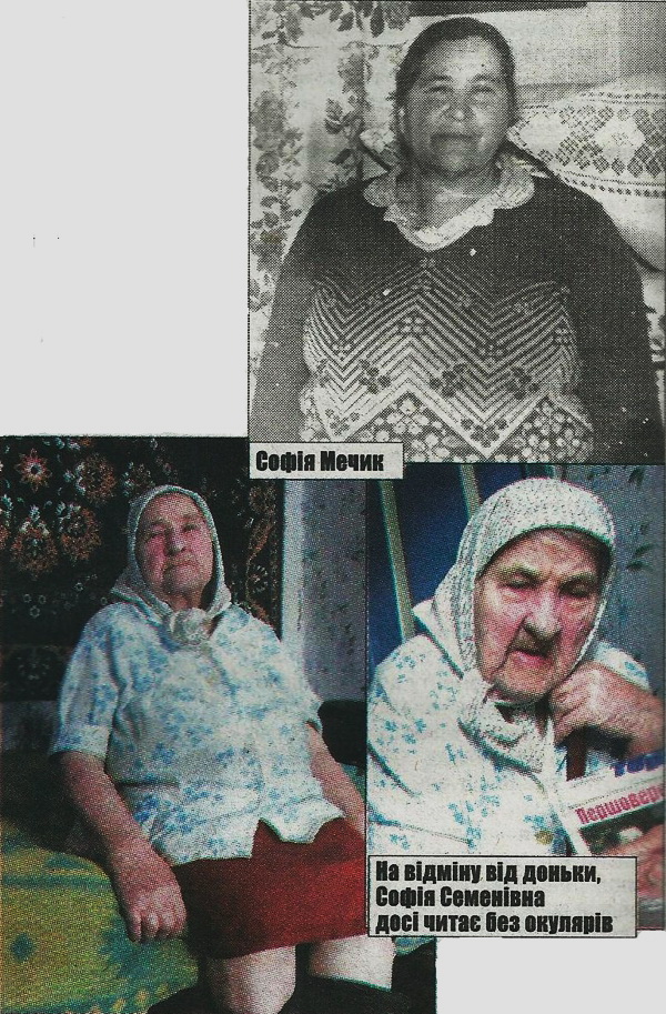 - Вона й досі шиє без окулярів, - повідомляє Лідія Олексіївна, єдина донька своєї матері. - Усім нам одяг ремонтує, навіть петельки на куртках робить, коли замок виходить з ладу. Читає газети також без окулярів. Тільки довго читати не може, бо очі починають сльозитися. '