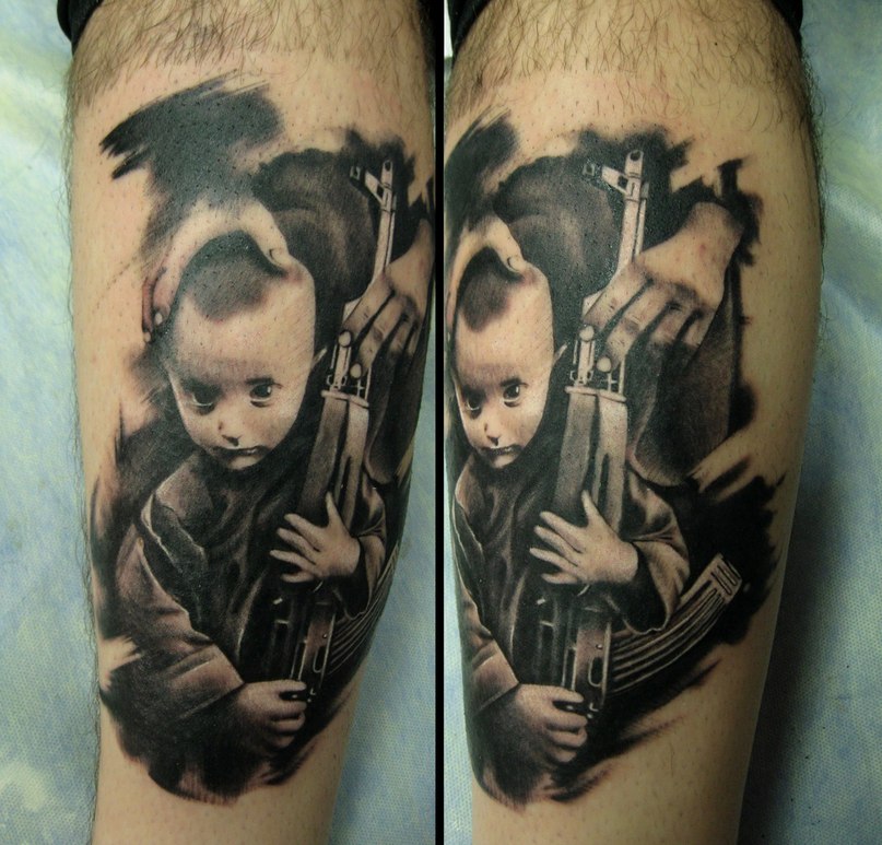 Нет, профессионально этому ремеслу я нигде не обучался, до всего доходил сам с помощью метода проб и ошибок. Естественно, помогал мне в моем новом увлечении интернет. Я читал различные статьи о тату, посещал форумы, смотрел обучающие видео. Тренировался на друзьях. Нашлись такие люди, которые были готовы ради искусства нанести себе на тело, мягко говоря, не особо презентабельный рисунок и дать мне возможность попрактиковаться. Свое первое в жизни тату я сделал своему другу Паше. Это был мой первый «подопытный кролик». Павел молодец, я очень благодарен, что он доверился мне.