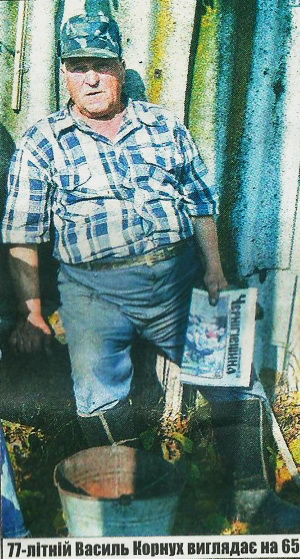 Адже інший чоловік у Кротах - дід Василь Корнух - не п’є й не палить ще з юних років. По суті ніколи в житті й не мав він таких шкідливих звичок. Цього року йому виповнилося 77 і він має неофіційний титул «найстаршого крота» Чернігівщини.