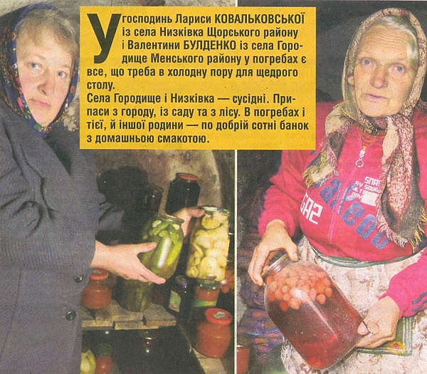 У господинь Лариси Ковальковської із села Низківка Щорського району і Валентини Булденко із села Городище Меншого району у погребах є все, що треба в холодну пору для щедрого столу.
