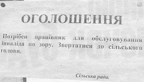 Люди такі ненавидні, що ой! Хто б тих працівників чіпав, якби вони нормально робили. А їх праця ж платна. Спочатку було 80 гривень, п'ять відсотків від пенсії. А тоді від виробітку. Працівниці почали: «Ти мало платиш. Бабі 90 год, і то вона більш дає. Так у неї город не пораємо». Не в своє діло лізуть. Усіх баб влаштовують працівниці, а мене ні. Бо бабу обдурить просто. Пристав до сільського голови, щоб допомагав, бо до кого мені ще звернутися?