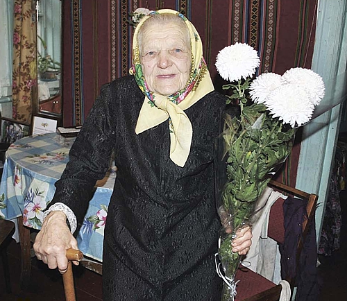 Таки ж жила, бо он скільки букетів - вітали її, Марію Сергіївну Кудрик, учительку-пенсіонерку, учасницю Великої Вітчизняної війни з 90-річчям і рідні, і з районного відділу освіти, й з сільради. Навіть відомий політик Михайло Чечетов вітальну адресу надіслав.