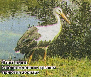 Пока аисты живут вместе с дикими утками и лебедями на озере: оно на территории зоопарка. У некоторых птиц изувеченные .крылья едва не тянутся по земле.