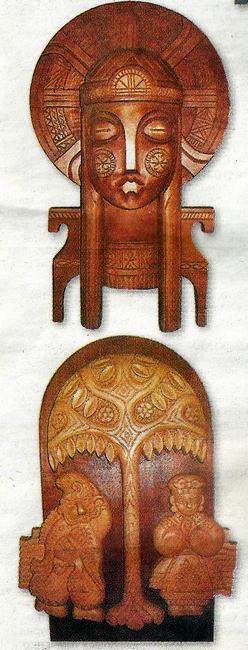 Неможливо не згадати дерев’яну картину під назвою «Майстер», яка є своєрідним прообразом України. На ній зображено митця, який вправно вирізьблює герб нашої держави. А по обидва боки - міфічні птахи-захисники Сирин і Алконост, що могутніми крилами оберігають неньку-Україну від злих сил.