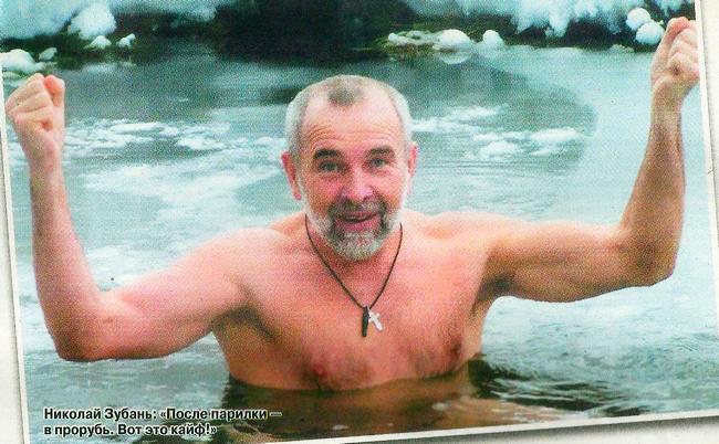 Закаливание и баня со мной всю жизнь. Купаюсь в реке каждый день, в любое время года. Это уже как зубы почистить. И в баню хожу еженедельно, а то и чаще. Мы с друзьями облюбовали одну и не изменяем ей вот уже много лет. Паримся и 31 декабря. Начинаем с обеда: веники, прорубь - все как положено. И, конечно, по сто граммов, чисто символически. У нас есть традиционные тосты: первый — «С легким паром!», второй - «За чистые тела!», третий — «За чистые женские тела!».