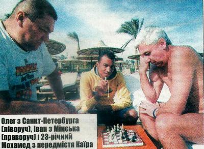 Спочатку перший так розійшовся, що для угамування цього суб’єкта викликали єгипетську поліцію з автоматами. Другий серед ночі пішов у місто «вчити уму-розуму» арабів, за що на знак подяки отримав розбите обличчя, порожні кишені та доставку до готелю в поліцейському авто. Представники готелю покарали співробітників МНС вищою мірою - позбавили доступу до алкоголю.