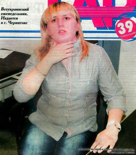 — События того утра я помню достаточно четко, — рассказывает Оксана. — Я спала, но проснулась, когда услышала, как ко двору подъехала машина. Из салона раздавалась громкая музыка. Выглянув в окно, я увидела, что это Ярошенко, поэтому дверь ему не открыла. Но он ее выбил и ворвался в дом. Стал оглядываться вокруг. Может, думал, что я не одна? Было заметно, что он очень пьян. Подошел ко мне, схватил за горло и стал кричать: «Сука, отдавай деньги». Я сказала, что денег нет. Тогда он ударил меня кулаком в лицо. Я упала. Когда поднималась, увидела, что из внутреннего кармана куртки он что-то достает. То был охотничий нож. Стала кричать: «Я беременная, не трогай меня!» Отступила в угол комнаты, к телевизору. Там он и ударил меня ножом - прямо в низ живота. Боли я не почувствовала. Помню лишь ощущение, будто из меня ведро воды вылилось - это были околоплодные воды и кровь. Опустила глаза, а подо мной — большая лужа. Не знаю, что было дальше. Врачи спрашивали меня, он ударил один раз или дважды, но я этого не помнила. Запомнила лишь, как он схватил меня за волосы и хотел перерезать горло. Я крутнула головой, и он разрезал мне щеку - от уха до рта. Когда я упала возле дивана, Ярошенко пытался меня поднять, кричал, чтобы отдала деньги. Я сказала: «Хорошо, отдам. Они в сарае». Он говорит: «Веди». Я вышла из дому. Смотрю, а калитка на улицу открыта. Побежала туда. И где те силы взялись?! В одной ночной рубашке, держась за живот, выскочила на улицу и побежала к соседу напротив. Оглянулась, а Ярошенко стоит возле своей машины. За мной он не гнался. Просто сел в машину и поехал. Я стала звать соседа, звонить в дверь, но там никого не было. Обратно до дома я едва дошла. Схватила телефон, сначала позвонила маме. Она кричала в трубку: «Немедленно вызывай «скорую»!» Так я и сделала. Набрала номер и еще несколько минут пыталась объяснить диспетчеру, что со мной произошло. Чувствовала, что вот-вот потеряю сознание. В этот момент зашла соседка.