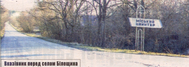 Чим керувалася влада району, дозволяючи розміщення біля села кладовища? Принаймні, для Білещини могла б «виторгувати» у міста Прилуки вказівник з назвою села, щоб у головах перехожих не виникало протиріч на кшталт «не вір очам своїм». Який зиск від сусідства отримало саме село Білещина, окрім численного у поминальні дні п'яного туриста, що, хитаючись, блукає селом, марно намагаючись налаштувати «автопілот» на Прилуки?