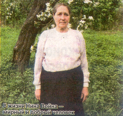 В том, что ей Война не подходит, убеждено всё село (Хотивля Городнянского района), в котором она живет. «Очень спокойная, уравновешенная. Работала свинаркой, на торфозаготовках, учётчиком молока. Никаких конфликтов, ссор, связанных с ней, не было», — сказали в сельсовете. «Живёт тихо, ни с кем не ссорится, сплетен не распускает», — озвучила мнение односельчан соседка Алла Федоренко.