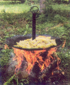 Жарить на ней можно мясо, сало, яичницу и т. п. В Прохорах коронное блюдо — картофель.