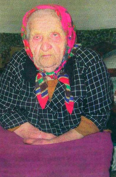 — Не думала і не соображала. Третій год у хаті сиджу і давно уже пора умерти. Так люди кормлять. Усе у мене е. Я не голодна і не холодна. Було, що і не їла по три дні, аби з голоду умерти. Та не витримувала. Коли умру, не знаю, нагадать не можу.
