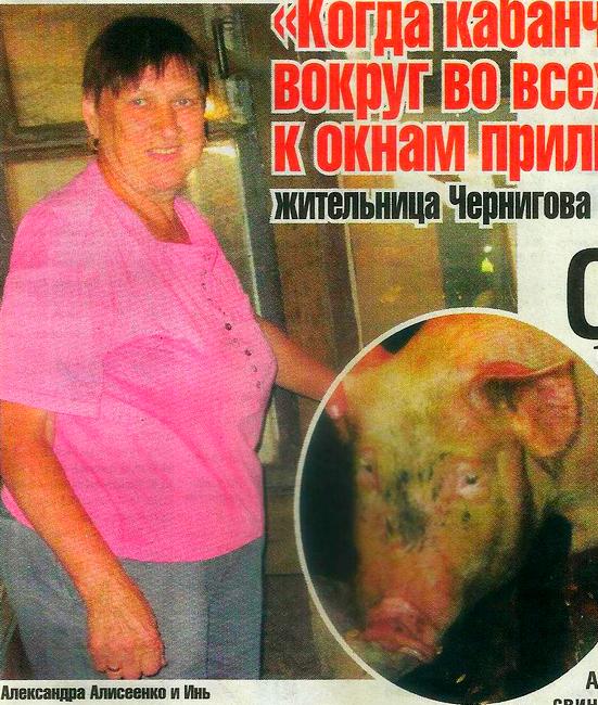 Семья Алисеенко живет на За-баровке. Это микрорайон Чернигова, стоит вплотную возле «новых» Масанов. Вокруг 9-ти, 10-ти, 13-этажные новострои. Здесь же самый высокий жилой дом в городе, серая 17-этажная высотка. Из окон верхних этажей многоэтажных домов видны гаражи и сарайчики жителей Забаровки. Александра и Иван Алисеенко живут в пятиэтажке. Напротив дома их сарай. Под деревом самодельная лавочка, возле нее выносная будка с цыплятами. Около семи вечера муж выпускает из сарая на прогулку курей, а 68-летняя Александра Андреевна идет в это время «порать» свиней.