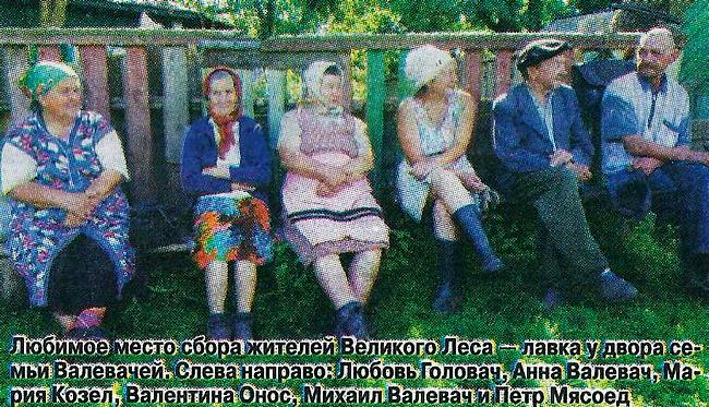 Вот, наверное, и все посетители Великого Леса. Кроме них, сюда приезжают лишь родные местных жителей, почтальон, фельдшер и председатель Крисковского сельсовета, к которому относится Великий Лес. А когда-то здесь был свой сельсовет, школа, Дом культуры. Даже новый ДК начали строить. Население Великого Леса тогда переваливало за две сотни. После очередной территориальной реформы село присоединили к Иванькову. Люди постепенно начали выезжать. Когда же и Иваньков стал частью Крисковского сельсовета, количество жителей Великого Леса сократилось рекордно — до трех десятков. Сейчас здесь не живет и столько. Однако люди об этом не жалеют.