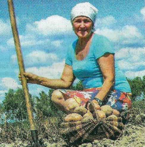 Мама не отпускает Колю на работу, пока он не подкопает несколько десятков клубней. К его возвращению она выберет из них весь картофель и ямочки заровняет. На коленях. Иначе не получается.