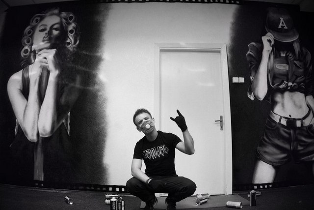 Первый заказ у меня появился на четвертом курсе университета, когда мне предложили разрисовать комнату одного парня. Это был пейзаж. За это я получил небольшой гонорар. Если говорить уже о более серьезном заказе, это была работа в Славутиче. Один парень заказал разрисовать комнату комиксами. За эту работу я получил около 2000 гривен. Инструмент и краска были мои.