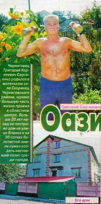 Черниговец Григорий Корнеевич Сергиенко родился в маленьком селе Скоринец Черниговского района, однако большую часть жизни прожил в областном центре. Больше 20 лет назад он построил дом на улице Бланка и на 30 сотках болотистой земли сумел создать настоящий оазис среди огорода.