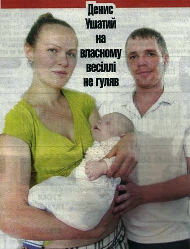 Своє весілля 28-річна Катерина Ріпняк та 29-річний Денис Ушатий зі Щорського району гуляли дуже скромно. Не було сукні, ресторану, фотографа і тамади, і навіть самого жениха. Одружили молодят заочно, свідоцтво принесли прямо додому. Такий виняток для пари зробили не просто так. Денис — боєць 81 аеромобільної бригади (колишня 95), десантник, захищав Донецький аеропорт узимку цього року. Коли збирався на війну, дізнався, що дівчина вагітна. Але часу на одруження не мав. Розписатися змогли, лише коли чоловік потрапив у чернігівський шпиталь.