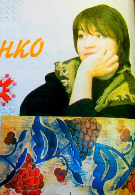 Вышивка - занятие трудоемкое, кропотливое, требующее усидчивости, терпения и времени. Поэтому и не так много последователей у Натальи Черняк. Да и у Ольги серьезные работы появились уже после 2000 года. Этот год был для нее сложным в личном отношении, и вышивка пришла на помощь как-то сама по себе. Сегодня Оля вышивает женские сорочки, мужские рубашки, рушники, одежду украинцев прошлых веков. Все работы старается выполнять в традиционном старинном стиле, свойственном жителям севера Украины. Для этого приходится читать много литературы, посещать музеи, выставки. И здесь на помощь ей пришел человек, увлеченный народным творчеством - черниговский искусствовед Вера Владимировна Зайченко. Будучи работником исторического музея, она глубоко изучила различные техники вышивки и работ по нанесению рисунка на ткань. Часть этих знаний она смогла передать и Ольге Костюченко. Именно после знакомства с Верой Владимировной, Ольга начала выполнять работы по набивке рисунка на ткань. Этот метод раскрашивания ткани издревле был присущ жителям Украины и, по своей технике, чем-то напоминает батик. На деревянной доске вырезается рисунок, который служит штампом для нанесения краски. Освоить этот вид искусства помог Ольге ее муж, Виталий. Именно здесь пригодились его умение и навыки в резьбе по дереву.