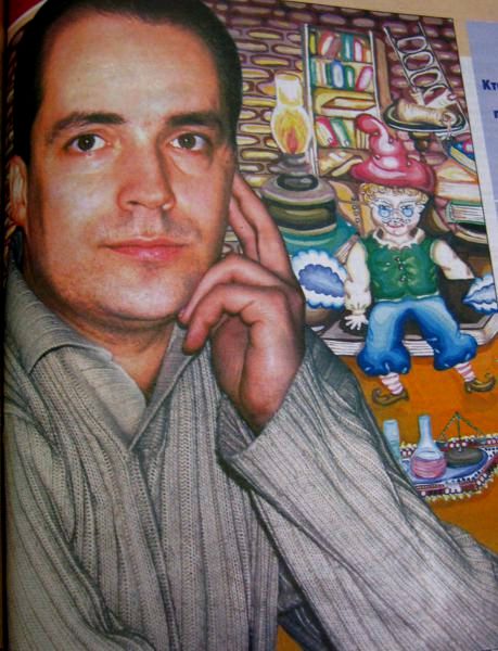 В основном, я - самоучка. Сколько я себя помню - столько я рисовал. Родители мне рассказывали, что в детстве, когда мне было года два, я заполз в шкаф с карандашом в руке и там все стенки изрисовал. Не знаю, о чем я думал тогда, но это были мои первые творческие начинания, самый первый опыт рисования. А еще в детстве я рано научился читать и прочел книгу "Приключения Незнайки". Поскольку книжка закончилась, я решил рисовать свои "приключения Незнайки". Этим я занимался до класса седьмого. Каждый блокнотик, в котором рисовал эти "приключения", я именовал солидно: "Том I", "Том II", "Том III-й" и так около 100 томов! Потом, видимо, перерос этот период. Раздарил картинки своим знакомым. Некоторые из них до сих пор хранят мои работы. Сегодня мне очень интересно на них посмотреть по прошествии стольких лет, вспомнить то, что было когда-то. В институт я пришел, практически зная по книжкам и другим источникам все, чему там учат, А вот кого я действительно считаю своим учителем, так это Николая Небылицу, которого, к сожалению, уже нет среди нас. Он работал художником в "Деснянской правде". Его я так и называю везде "Учитель". У нас было много общего. Даже стиль работы был похож. Я сегодня продолжаю традицию, которую он основал. Стиль этот называется "Гоп-арт". В этом стиле никто после него не работал, кроме меня. В июле я готовлю выставку своих работ в художественном музее. Приходите, посмотрите.