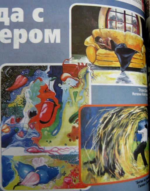 Я обычно даю эту технику старшей группе, рассказываю, как работали мастера эпохи Возрождения, но ей просто были интересны картины ребят из старшей группы. Она стала спрашивать, а я ей стал объяснять. В результате, она стала ее осваивать. Поскольку Юле было 12 лет, она в процессе поиска, и свой стиль у нее еще не сложился окончательно. Юля как бы взяла часть из этой техники и органично вплавила в свой фирменный стиль, в котором теперь и работает. Результат - она победила в трех конкурсах, везде заняла первое место - в двух городских, и одном областном. Думаю, что победы еще будут. Да и работы говорят сами за себя. Действительно есть на что посмотреть.