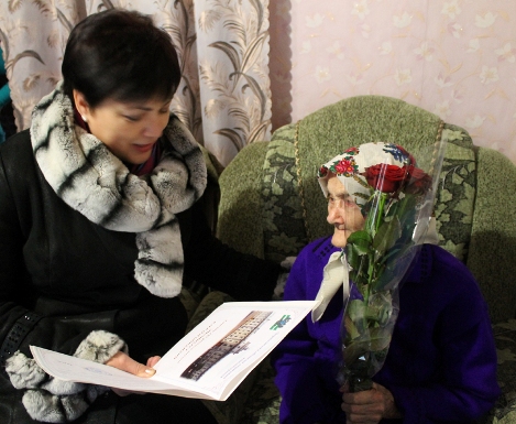 Разом із кореспондентами привітати довгожительку і солдатську вдову прийшов Олег Миколаєнко - директор сільгосппідприємства «Обмачівські зорі», що вже 10 років плідно працює в аграрному секторі Бахмаччини. Господарство входить до складу Групи компаній «Гіравіо».