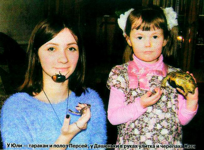 - В Крыму ящериц, богомолов и им подобных полно, — рассказывает. - Я постоянно ловила кого-то, приносила домой. Но каждый раз родители заставляли избавляться от них. А з 4 или 5-м классе я познакомилась с девочкой, разводившей гигантских улиток ахатинов Я купила себе двух. За год они выросли до 17 см. Наблюдать за ними очень ~о-нравилось.