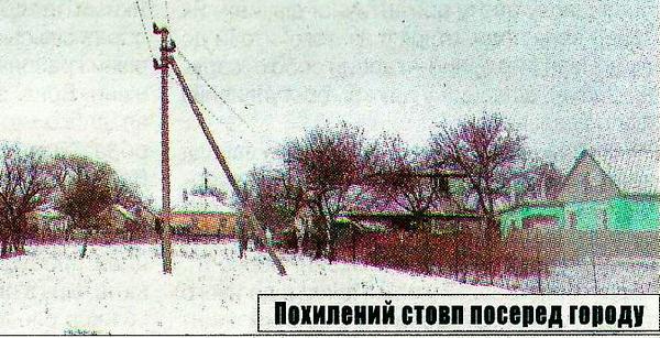 Однак і це не всі проблеми. Сьогодні ПЛ 10 кВ «Хлібзавод» перебуває в аварійному стані. Одна з опор, у кількох десятках метрів від двору пана Вартового, падає в річку, а металева надбудова на іншій опорі, котра знаходиться у дворі, надломилася і похилилась. Будь-який порив вітру може спричинити обрив проводів і тоді... Кілька років тому у Ріпкинському районі сталося щось подібне: згорів господар, будинок, хлів..