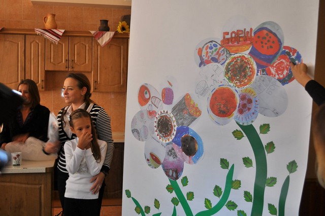 Чтобы дети поняли, что творчество может быть воплощено в жизни, Лара Коротенко обработала и распечатала рисунки детей на кружках. Каждый ребёнок стал маленьким дизайнером, и у каждого появилась вера в то, что он сам может добиться чего-то в жизни. Также Лара распечатала баннер размером 2х1,5 метра, рисунки детских борщей разложила в виде цветка, а цветные стикеры были на стеблях в виде листьев. На листьях были написаны слова «любовь», «счастье» и другие пожелания и Лара предложила гостям выставки купить эти листочки, а деньги пошли на благотворительность. То есть это символизировало то, что люди своими силами, и своими вложениями помогали расти цветку из детских работ борща.