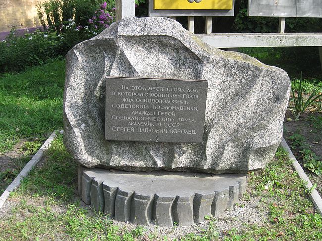 Пам’ятний камінь на місці будинку, де жив Сергій Корольов, у Ніжині на Чернігівщині