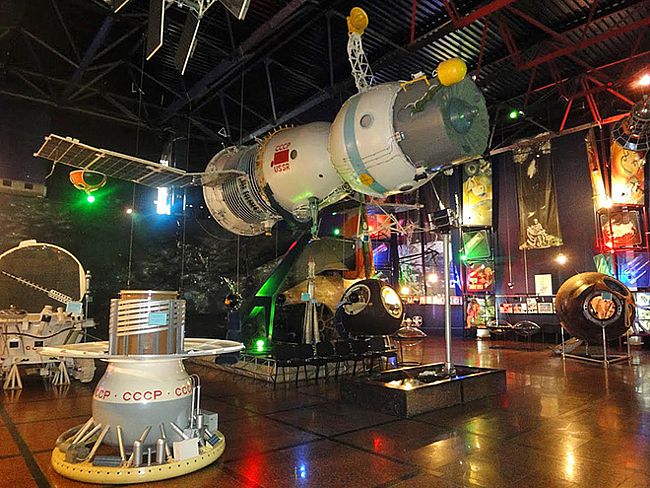 Тут вся історія підкорення космосу. Від «портретів» собак-космонавтів до макетів штучних супутників Землі та автоматичних міжпланетних станцій: «Луноход-2» і гагарінський «Восток» натуральних розмірів, виставковий зразок корабля «Союз» і справжній, обгорілий під час повернення на Землю модуль корабля «Союз-27» з автографами Володимира Джанібекова та Георгія Гречка.