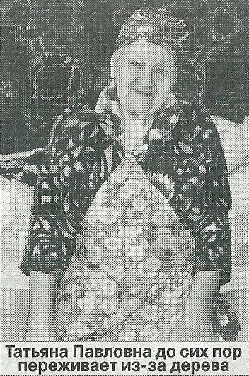 — Несмотря на это, не всё в этой истории правильно. И не всё красиво, — говорит депутат горсовета Алла Короткова, которая добивалась, чтобы бабушке отдали «её» берёзу. — Татьяна Павловна прожила нелёгкую жизнь. Перенесла страшную трагедию. У неё почти 40 лет трудового стажа. Неужели она в таком почтенном возрасте не заслужила немного уважения и снисхождения?