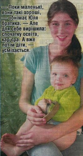 — Поки маленькі, вони такі хороші, — обнімає Юля братика. — Але для себе вирішила: спочатку освіта, кар’єра. А вже потім діти, — усміхається.