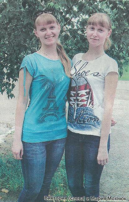 Обе — единственные в Щорской районной гимназии получили золотые медали. Уже первое тестирование (по украинскому языку) на ВНО показало, что учителя сёстрам оценки не завышали. У Виктории Мохнюк — 194 балла, у Марии — 185. На тестировании по истории — соответственно 190 и 191. Результаты сестёр — лучшие в гимназии.