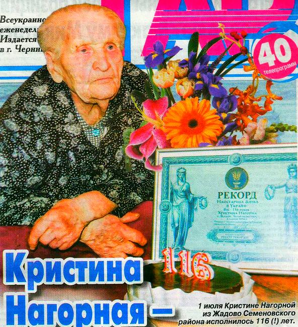 1 июля Кристине Нагорной из Жадово Семеновского района исполнилось 116 (!) лет.