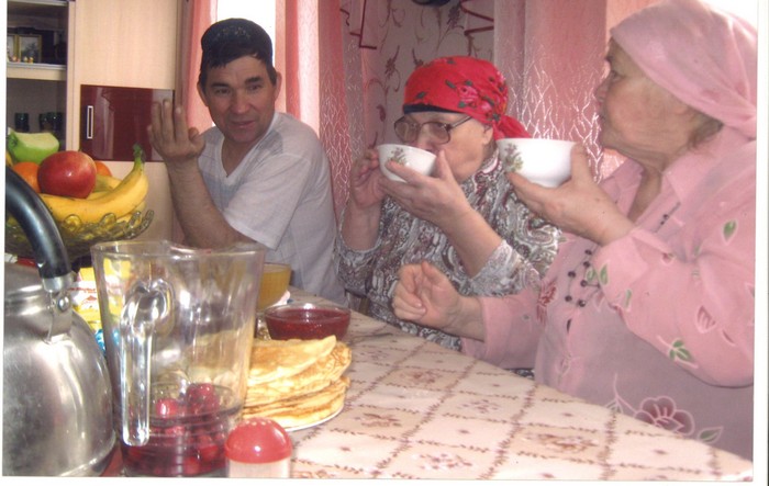 Женщина делиться, что приезд ее к родным – всегда праздник. Брат сразу режет барашка и готовит шашлык. У них дома мясо разделывают только мужчины, женщины этим не занимаются. Однажды по украинской привычке Гульсирень сделала все сама, разделав мясо птицы, не дожидаясь мужчин, чем вызвала негодование родных, особенно женщин. Гостей в татарском доме встречают чаем. К чаю подаются пироги, блины, мед, варенье, разные сладости. Недаром есть национальная поговорка – «чай пьем – пока назад не упадем».