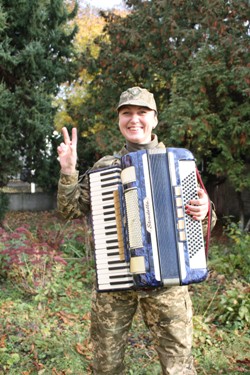 Вона мати двох славних діточок. І хоча меншому лише рік, це не зупинило тендітну жінку Анну Щербань з Остра вдягнути камуфляж і піти до лав Збройних Сил України. Та, на щастя, служить вона там не зі зброєю в руках, а з... музичним інструментом.