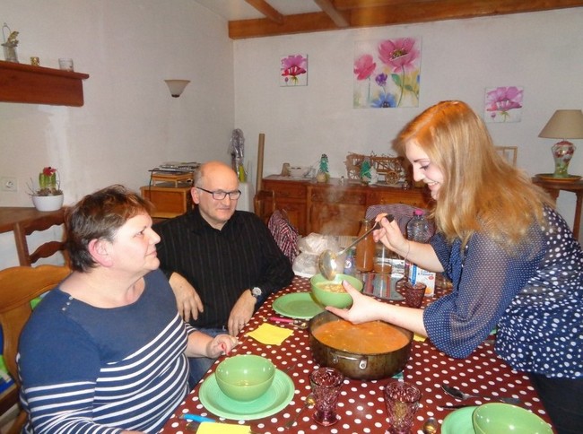 «До кого б із знайомих французів я не приїхала завжди готую український борщ і вареники. Цим самим хочу познайомити їх з українськими національними стравами. Господиня, у якої я жила, Марі-Поль спочатку дивилася на мене великими очима. Тому що в них не прийнято змішувати в одне різні овочі. Вона мені каже, мовляв, всі ці несумісні інгредієнти в одну страву, але як? На що то буде схоже? Та коли я зварила і ми всі сіли за стіл, схвальні відгуки почала слухати вже з першої ложки. Пройшов деякий час, вони просять: приготуй будь-ласка отой свій фірмовий суп – борщ. А згодом то взагалі попросили наварити семилітрову каструлю, щоб гостей пригостити. Пів дня я варила той борщ, а ввечері з десяток французів його куштували. Сподобався всім!».