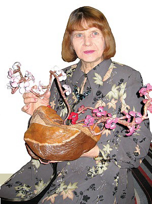 Когда смотришь на эти работы удивительной красоты — цветущую сакуру, яркие маки, романтический розовый туман, фигурки людей и животных, трудно поверить, что они изготовлены из старых кожаных вещей. По словам Александры Ивановны, эту технику она освоила всего лишь несколько лет назад. Знакомая показала ей всего лишь один элемент — если кусочек кожи подержать над свечой, он станет выпуклым, и его вполне можно использовать как лепесток цветка для аппликации. Вот так и родилась одна из первых работ мастерицы — сакура. Эта картина была настолько удачной, что послужила толчком для дальнейшего творчества. Потом на свет появились выпуклые натюрморты, пейзажи, абстрактные композиции.