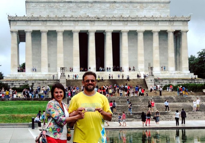 Александр Норинский с супругой Наталией в гостях у дочери в США. Фото сделано возле мемориала Линкольна