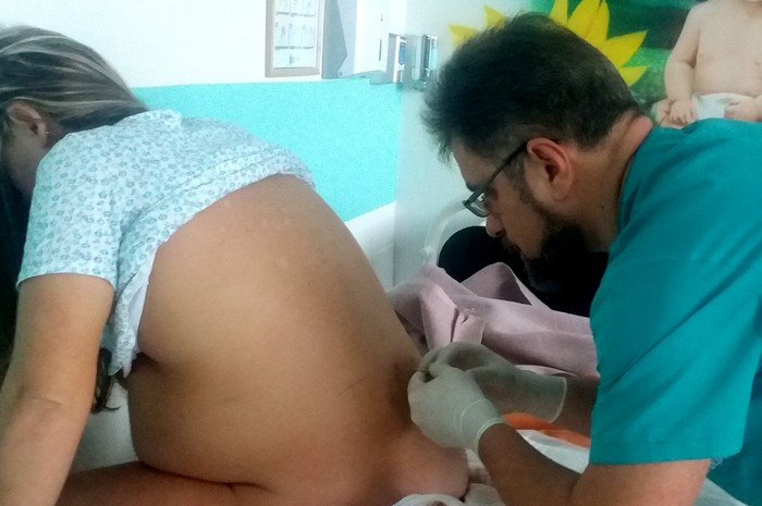 Доктор Норинский делает своей пациентке спинномозговую анестезию