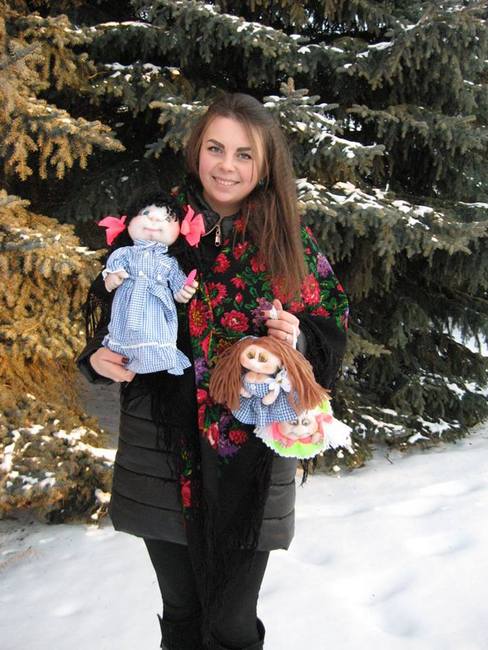 Колись у далекому дитинстві Маринина бабуся на її очах миттєво зробила ляльку зі звичайної хустини. Мабуть, те дійство глибоко зачарувало дівчинку, залишилося в серці та пам’яті. І ось уже у Марини – не менше п’ятдесяти власних ляльок. Нерідко вона робить їх схожими на своїх друзів та знайомих, а потім дарує – на день народження або просто так – на добро. От зробила своїй подрузі руденьку Наташу. Рідні дівчини одноголосно сказали: «Ну це – копія ти».