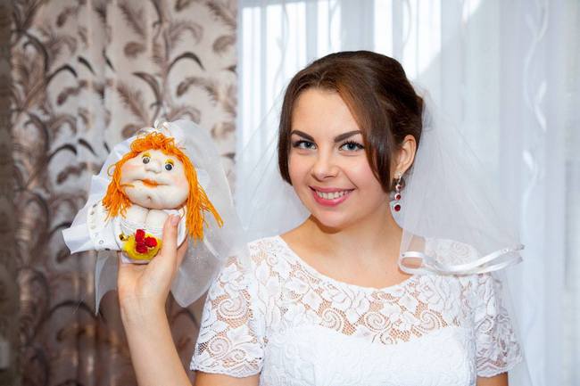 Разом із домашніми ляльками назавжди залишиться і лялька Наречена. Її Марина створила до власного весілля й навіть сфотографувалася з нею напередодні у весільній сукні. «Одна наречена і друга Наречена, давайте сфотографуємо вас разом», – запропонував фотограф, зберігши ту мить назавжди.