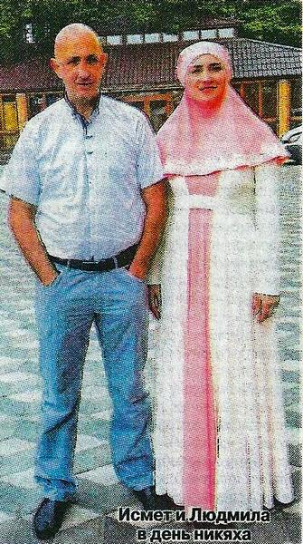 Поскольку Исмет — мусульманин, пара взяла в мусульманском центре в Киеве никях (мусульманский брак), ведь одна регистрация в ЗАГСе для мусульман законным браком не считается. На церемонии присутствовали только самые близкие Исмета и Людмилы. После нее тем же тесным кругом отпраздновали свадьбу в кафе — как и надлежит у мусульман, без алкоголя и свинины.