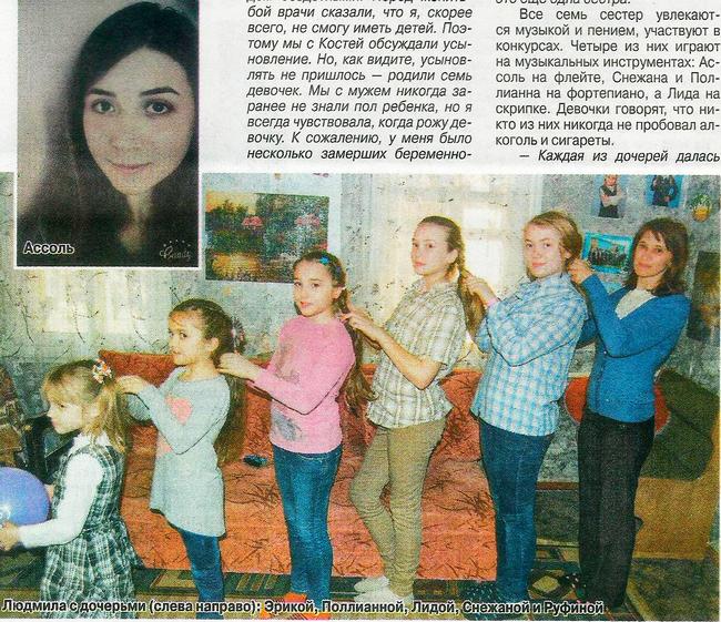 Все семь сестер увлекаются музыкой и пением, участвуют в конкурсах. Четыре из них играют на музыкальных инструментах: Ассоль на флейте, Снежана и Пол-лианна на фортепиано, а Лида на скрипке. Девочки говорят, что никто из них никогда не пробовал алкоголь и сигареты.