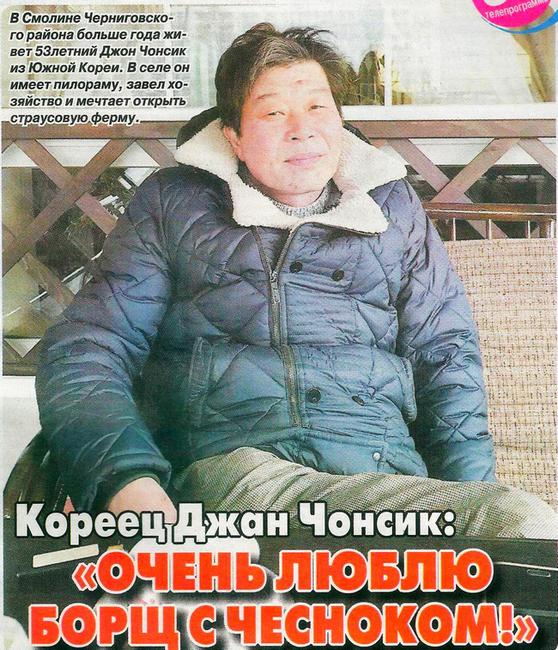В Смолине Черниговского района больше года живет 5З летний Джон Чонсик из Южной Кореи. В селе он имеет пилораму, завел хозяйство и мечтает открыть страусовую ферму.