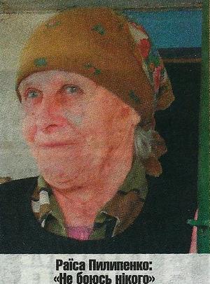 77-річна Раїса Пилипенко з села Кошани Козелецького району 13 років як живе сама у крайній хаті. Двері на ніч не замикає. Хіба що за защіпку від котів і собак. Каже, як хто захоче залізти, замки не врятують.